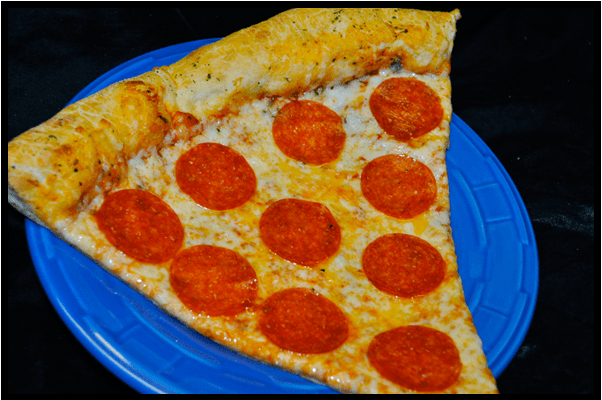 This is a picture of a single slice of pizza from my favorite pizza place in Fort Collins, Pizza Casbah.