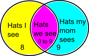But then, there could be overlap of the “hats we see.” I could see 5 of the same hats my mom sees. In such an instance we would have this.