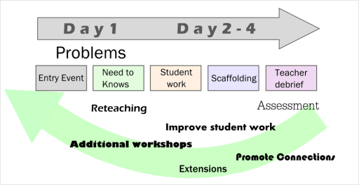 Not real. Due to the tighter time frame, a PrBL Math teacher always has to be formatively assessing students, differentiating instruction and generating good problems. You don’t have weeks to create a workshop, you have a day or so. So you either have to be well prepared for any and all student knowledge gaps and/or quick to respond to Need-to-Knows from students. To me, the work of PrBL is more challenging.