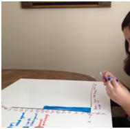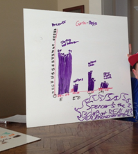 Finally, I had them take the charts that they struggled with and asked them to draw a graphic representation. This was super fascinating! The one girl in the group, younger than the other kids by two years, generated this chart. She got the idea of key, x and y-axis, and did not hesitate to jump right in: