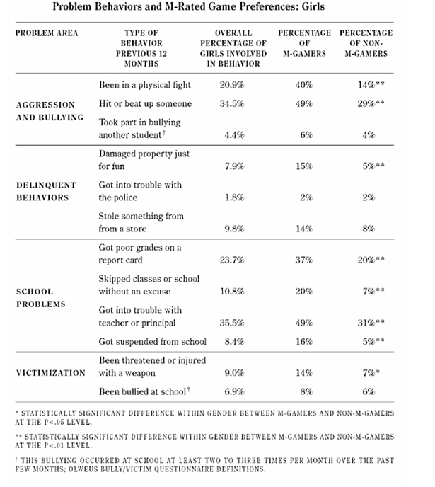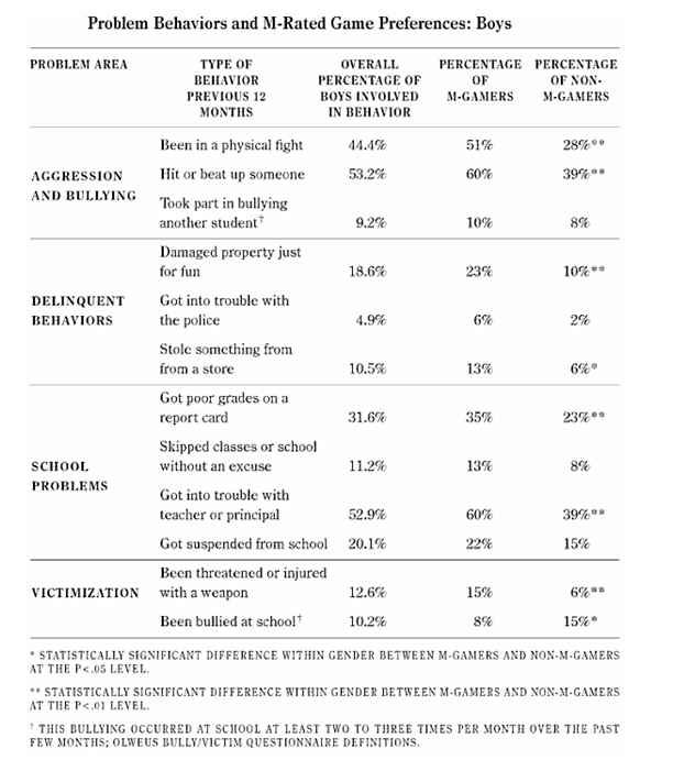 - M-rated games cause violence
