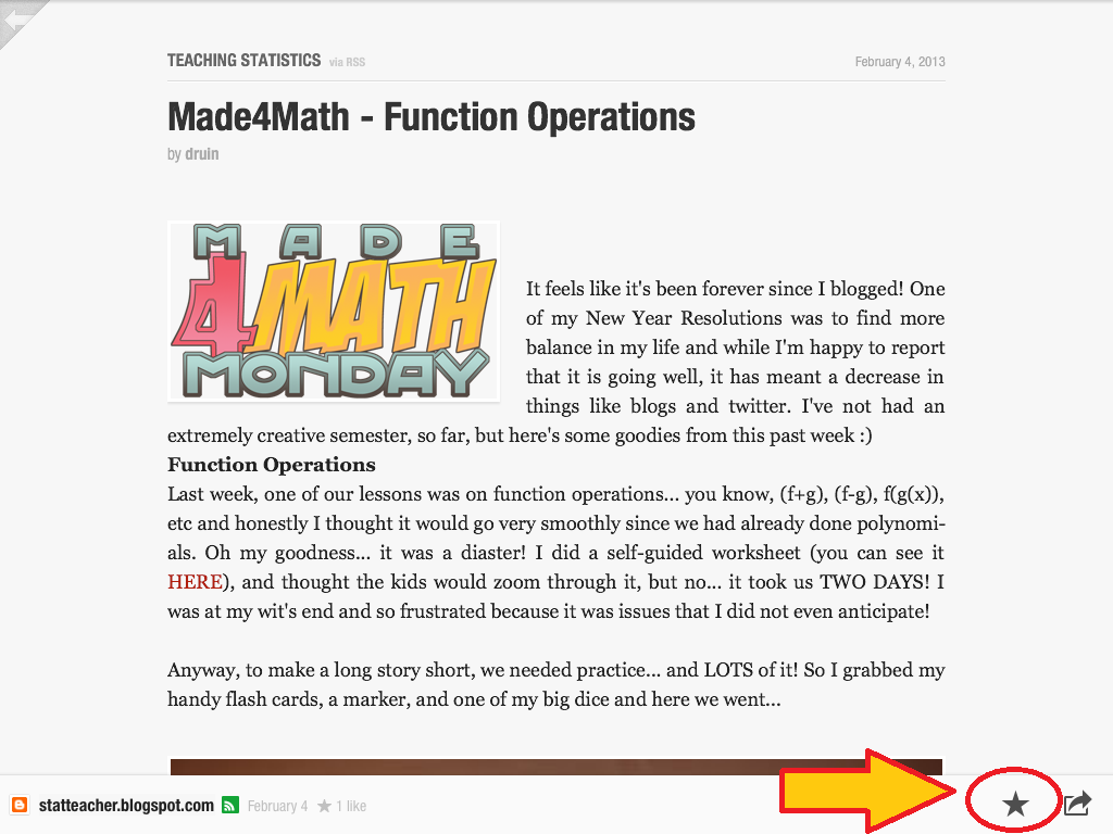 Bonus) Speaking of the 2012 Math Blogging Retrospectus, remember how difficult it was to go back through the year and find stuff from, like, February? Well, let’s use the ability to “star” your favorite posts in one touch.