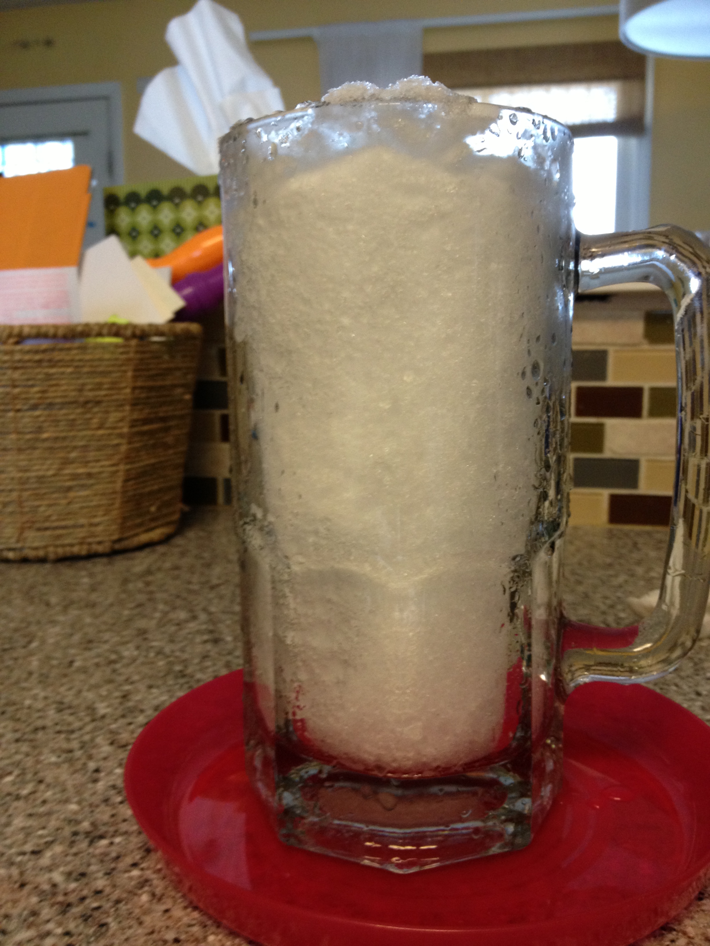I got this ridiculously large [cola] mug at a white elephant gift exchange last Christmas. And now I have a chance to use it!