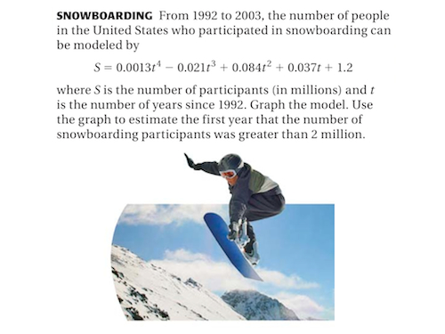 Using an example of a snowboarder artificially grafted on to a problem regarding growth in popularity of the sport sort of destroyed my opening slide (but I still stand by it). No, artificially plastering a picture of a snowboarder won’t suddenly get students interested in growth models, but it might give them a contextualized understanding of parabolic motion, the way a basketball shot, and yes, angry birds might.