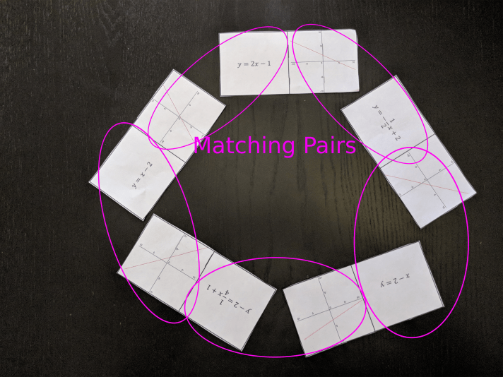 Use a card sort. Card sorts are among my favorite methods to develop conceptual understanding. A tactile matching activity – even though it really is just a glorified version of a set of practice problems – engenders natural conversation and checking one another’s’ work. The downside is card sorts are a bit of a pain to prepare for. The Desmos card sorts help with that aspect, but I find that digital card sorts don’t have the same energy that tactile ones do (that might be my own Old-Man-Yells-At-Cloud bias though).