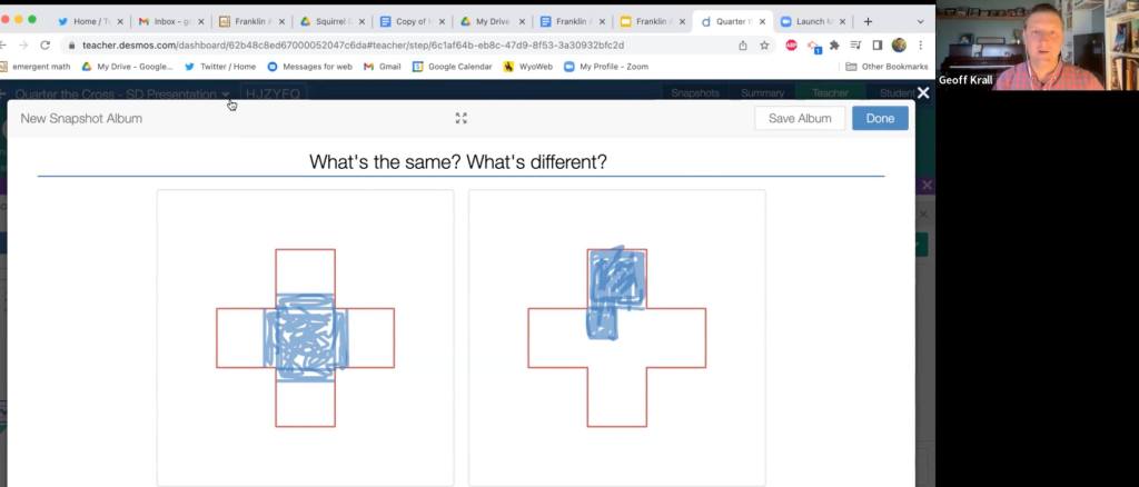Typically I have students do this twice. Then I “force” them to do it a third time to really stretch their thinking. By that point I have dozens of crosses I can compare. My go to prompt is “what’s the same? What’s different?“