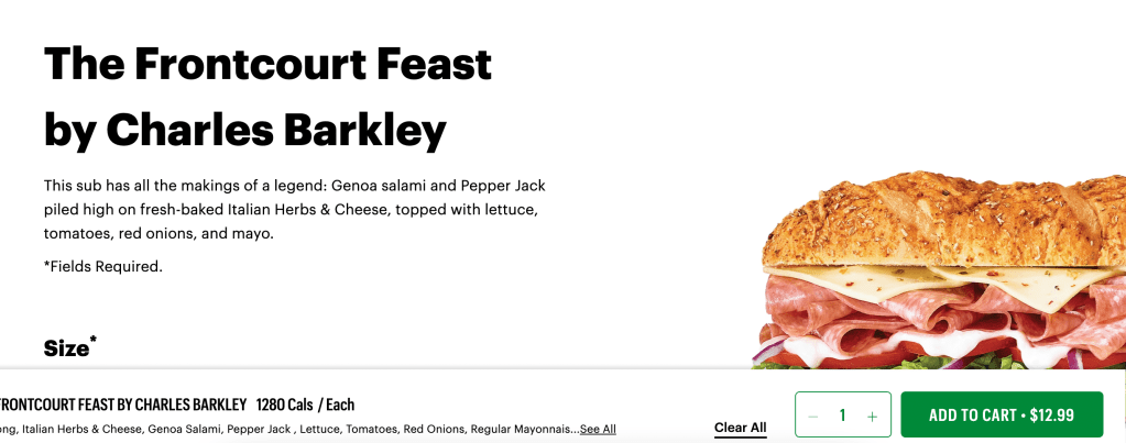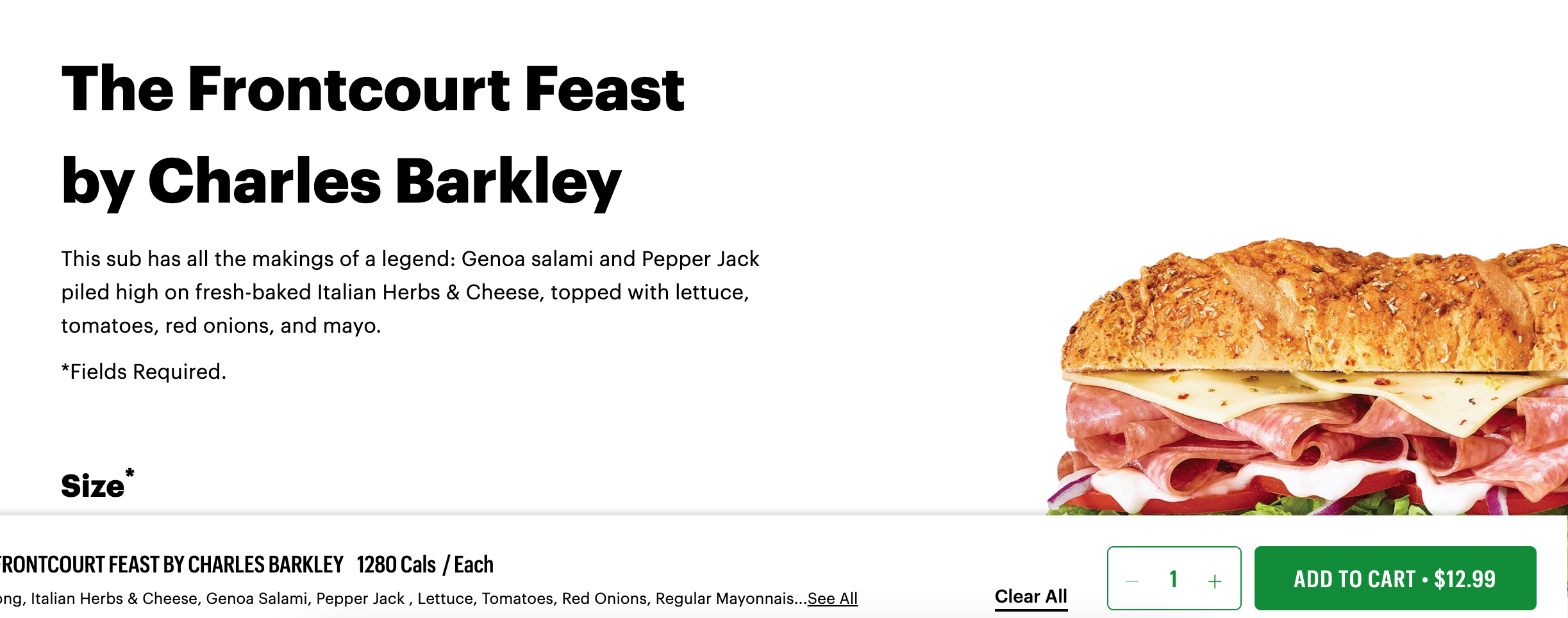 The average price for a sub looks roughly to be around $11. Let’s tack on another buck in case I splurge for the occasional Frontcourt Feast from Charles Barkley ™.