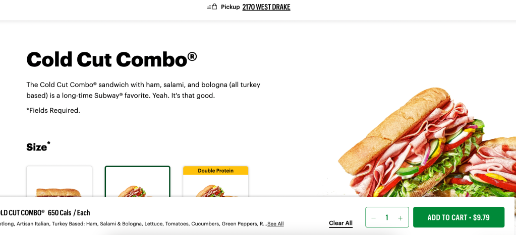 We are indeed a long way from $5 footlongs! Even a Cold Cut Combo is $10? Inflation I tell ya. Some subs even get well into the double digit range for prices!