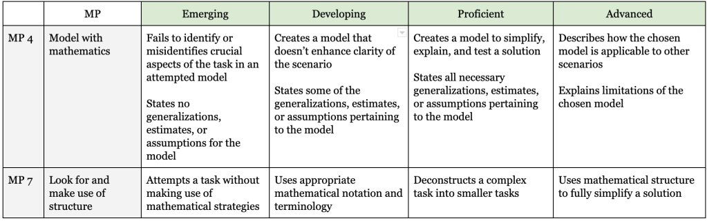 And now to assess the responses with a rubric. Let’s draw from my SMP rubric. As I recommend with rubrics, let’s draw from one or two indicators, rather than all of them.