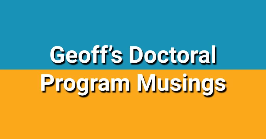 This page serves as a sort of journal for Geoff’s doctoral program, separate from the Emergentmath blog. Here, Geoff will share thoughts and reflections on classes, insights into literature and other PhD-related musings. While you’re here, feel free to explore Geoff’s main blog, various “miniseries,” and select blog posts. Here is Geoff’s About Me page.