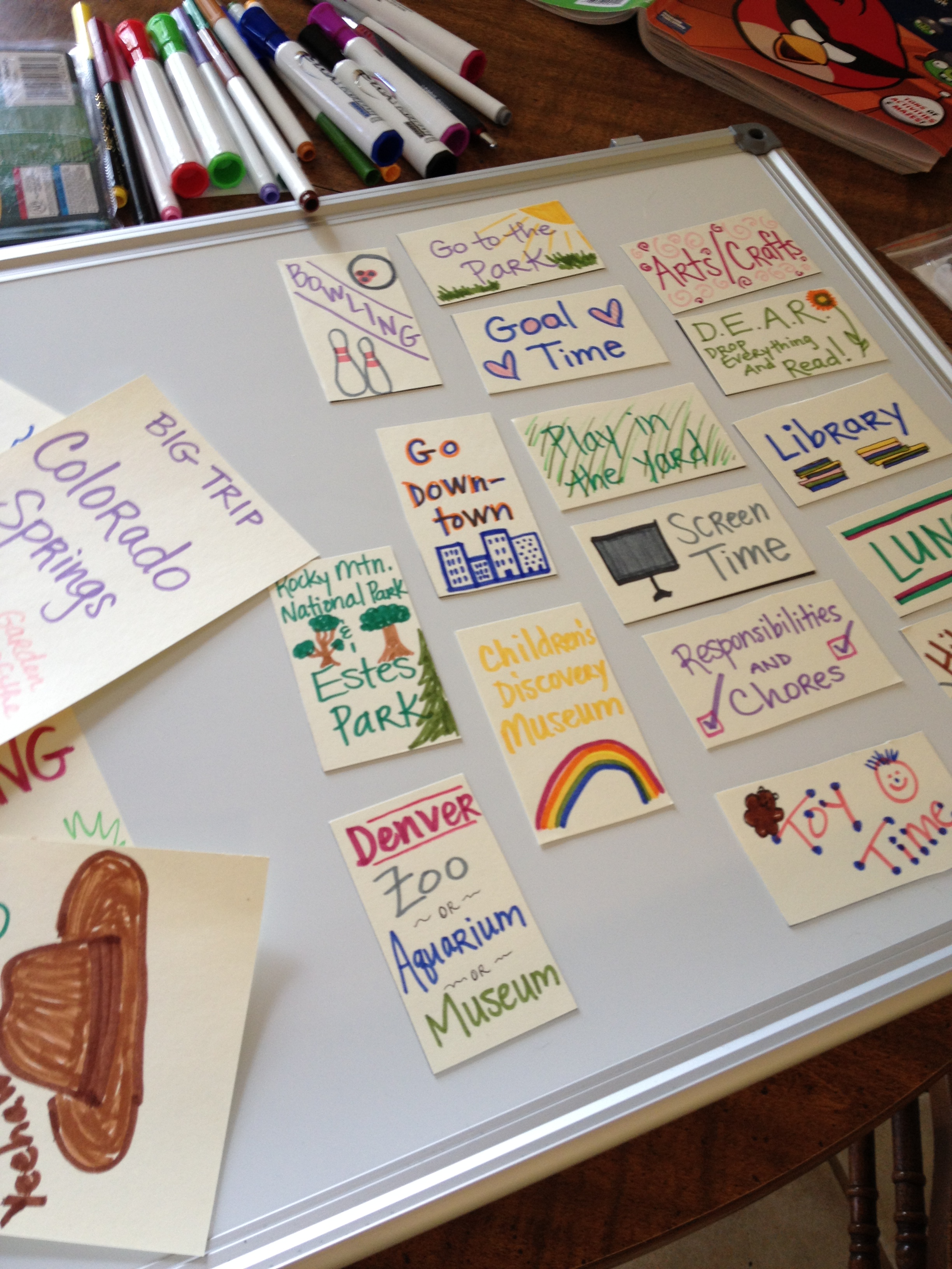We thought of everything we liked to do, or generally needed to do, put them on magnets and rearranged them on our daily schedule as we saw fit.
